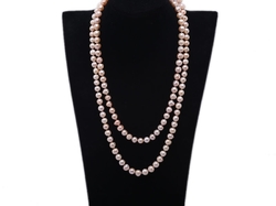 Módní náhrdelník zdobí 7-7,5 mm velké růžové sladkovodní perly kulatého tvaru. Délka činí cca 110 cm.