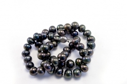 Tento krásný šperk nezvyklé hnědo zlaté barvy je skvělým doplňkem ke světlým šatům s kulatým výstřihem. Velikost perel je cca 8 mm a délka náhrdelníku je asi 41,5 cm. Perly jsou navlékány uzlíkovou metodou. Zapínání tvaru kostky je z kovu stříbrné barvy.